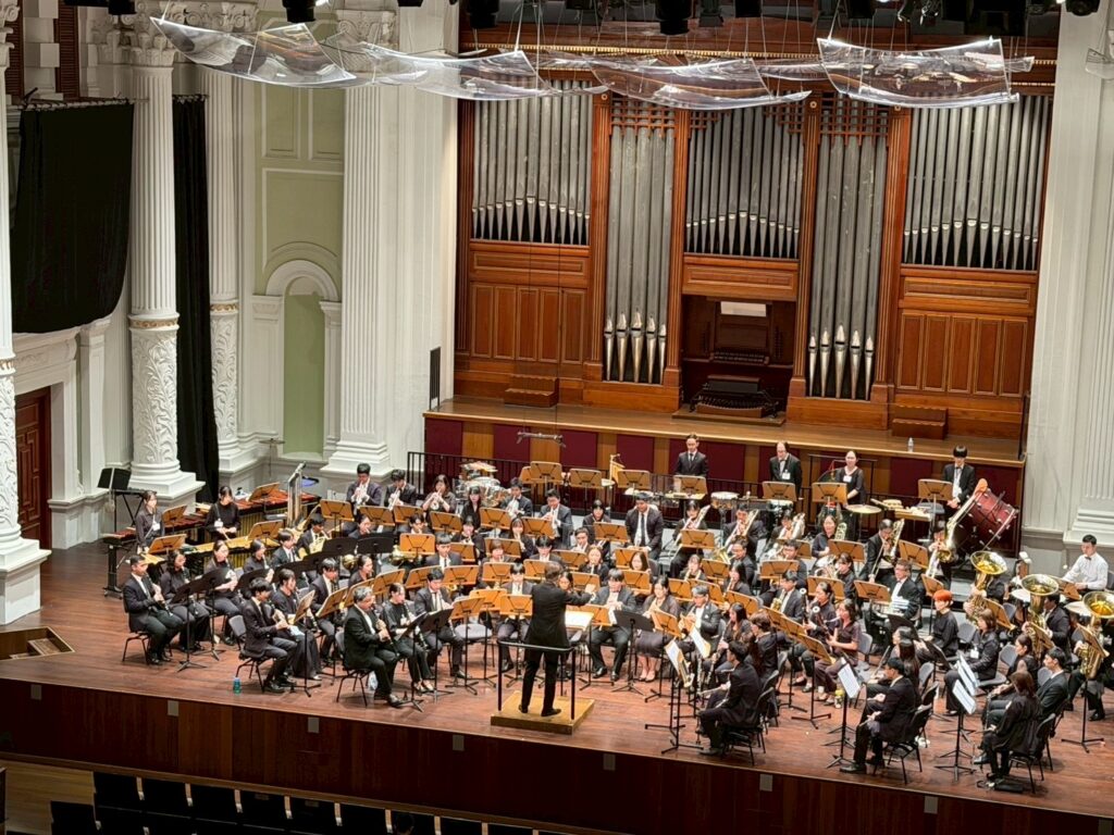 演奏会終了後、シンガポール陸軍中央音楽隊のコンサートを鑑賞しました。2023年に不動岡高校吹奏楽部が基地で一緒に練習していただいて、何か演奏して!というリクエストでディープパープル・メドレーを演奏した記憶があります。