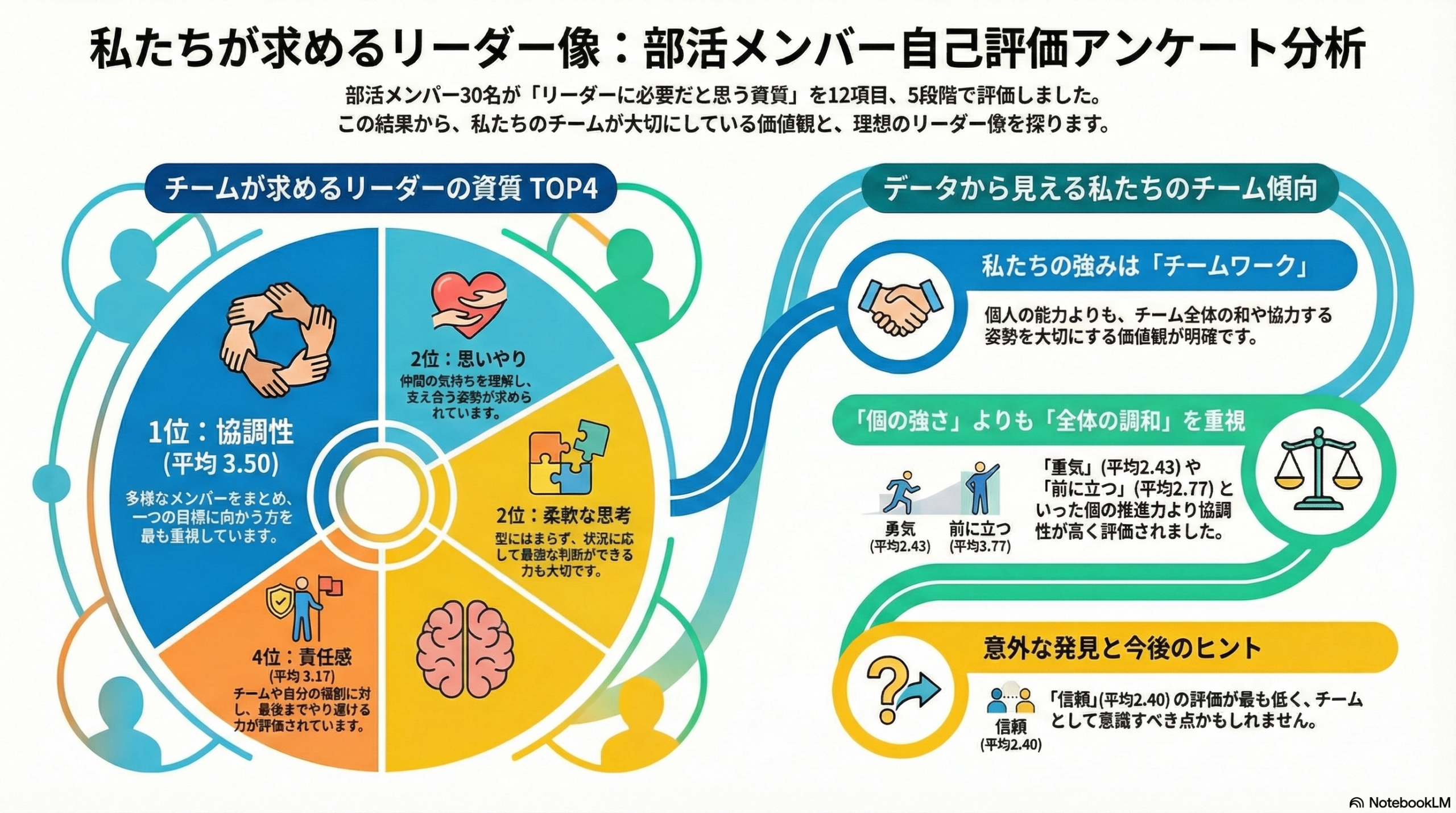 全然別件ですが、生徒に「リーダーの条件」を自己評価してもらいました。