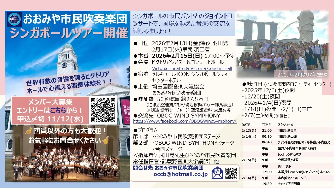 おおみや市民吹奏楽団は次がシンガポール演奏旅行!